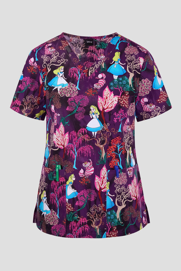 Verrückt nach Stil und Komfort? Der Tooniforms Here and Everywhere Damen-Kasack bringt mit Alice im Wunderland und der Grinsekatze ein Stück Magie in deinen Arbeitsalltag. Das bunte Design sorgt für gute Laune, während das atmungsaktive Baumwoll-Stretch-Material dir den ganzen Tag über Bewegungsfreiheit und ein angenehm weiches Tragegefühl bietet.